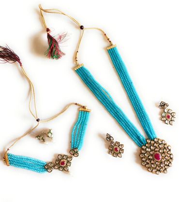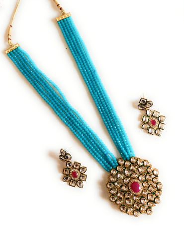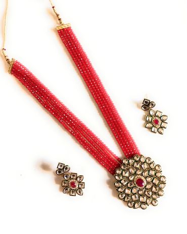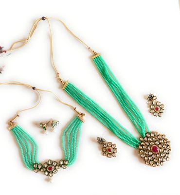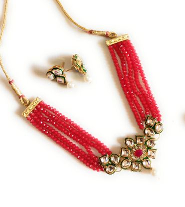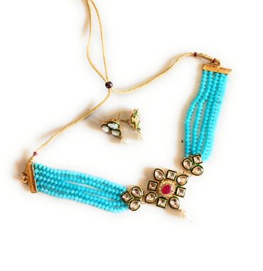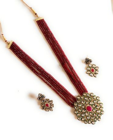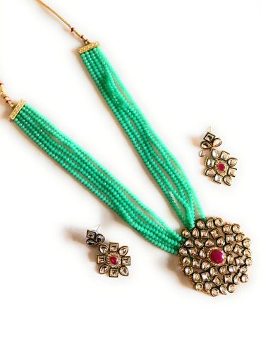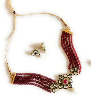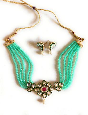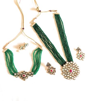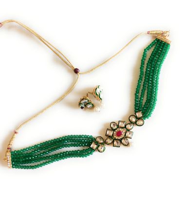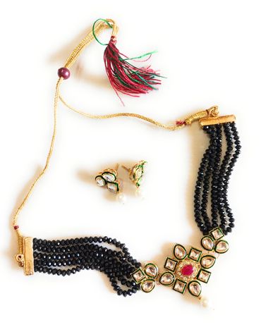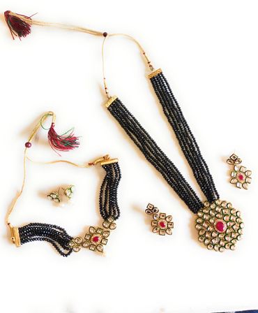 Hand crafted in 5 layered Onyx crystal cut stones with uncut polki kundan with 18 k gold plating. Perfect choice for any occasion or gifting choice .